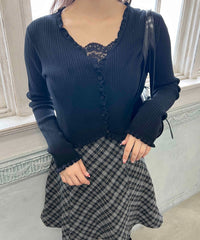 やわらかく女子っぽ◎フリルリブカーディガン