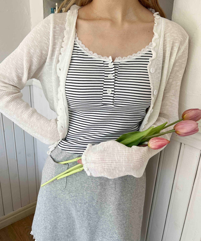 カーディガンやジップパーカーなどの羽織アイテムと合わせて