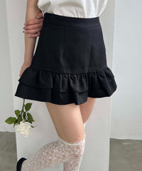裾だけ控えめに広がるフリルを使ったミニスカート