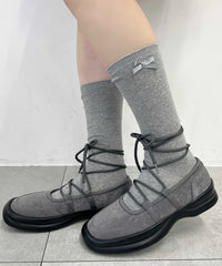 ソックスのカラーと同色のリボンでシンプルながらもガーリーな印象に♡