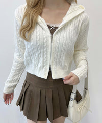 トレンド感たっぷりのケーブル編みショートカーディガン。