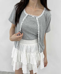 首元とフロントにはミニリボンとレース入りでガーリーな女性らしさも