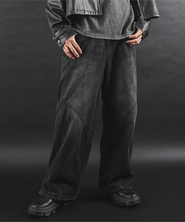 全体的に切替デザインを施し膝下から自然に落ちるラインでリラックス感がありながらも、武骨さを演出。