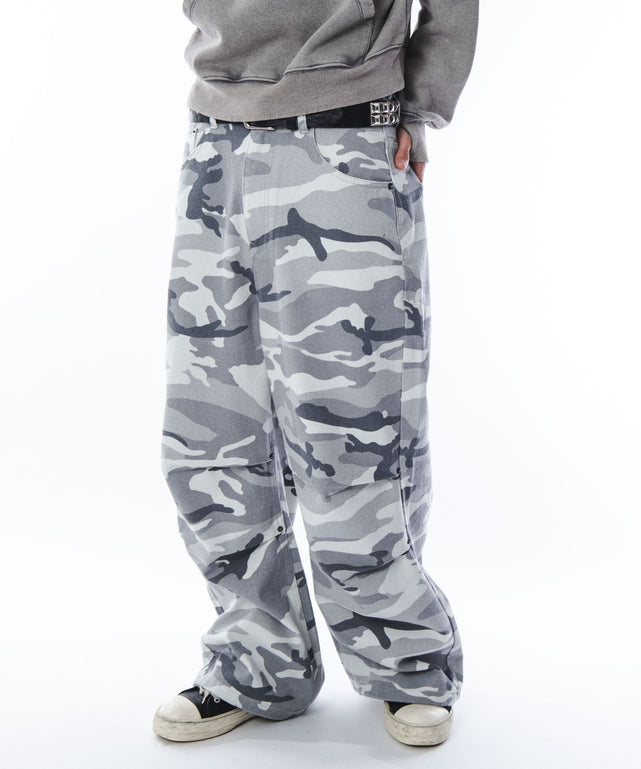 【存在感のあるカモフラージュ柄が目を引くパラシュートパンツ】