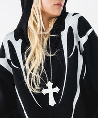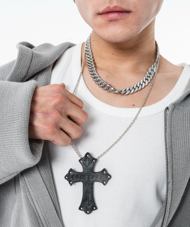 PU素材にエンボス加工でロゴを施した、存在感のあるクロスネックレス。