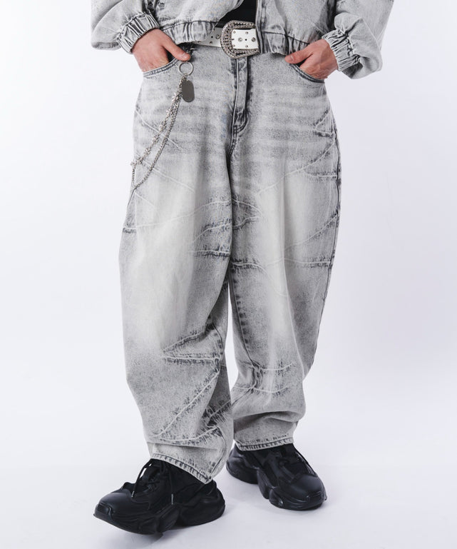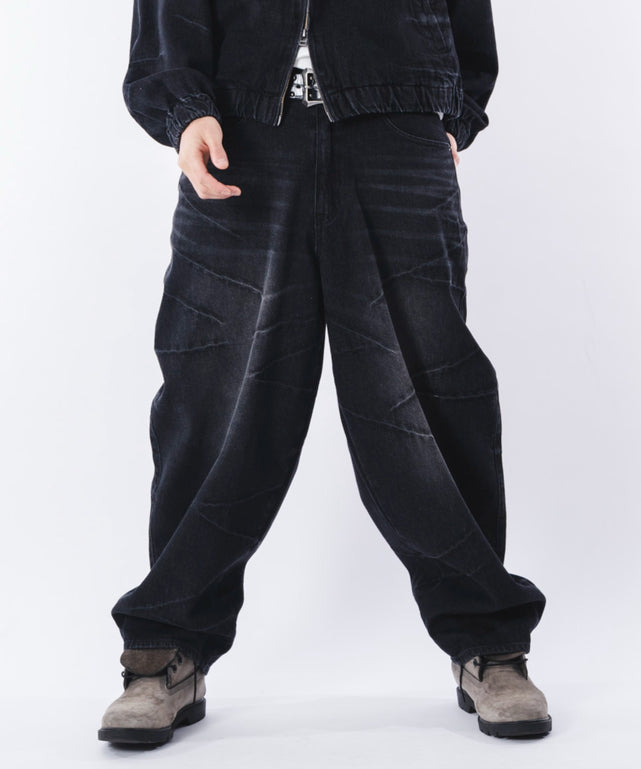 【大胆なスラッシュデザインと、丸みのあるバルーンシルエットが存在感を放つスラッシュデニムパンツ】