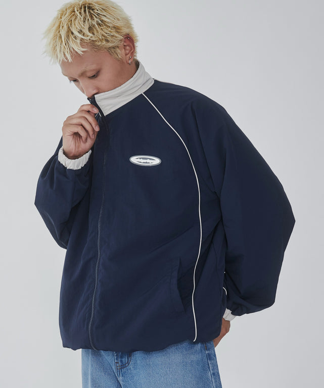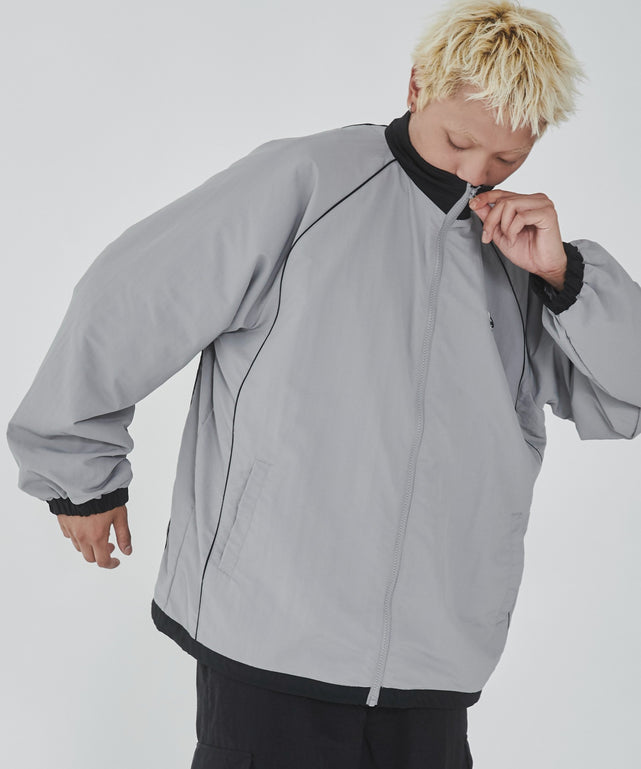 全3色の展開で、グレー、ネイビーは部分で配色仕様になっており1枚で存在感のあるアイテムになっています。