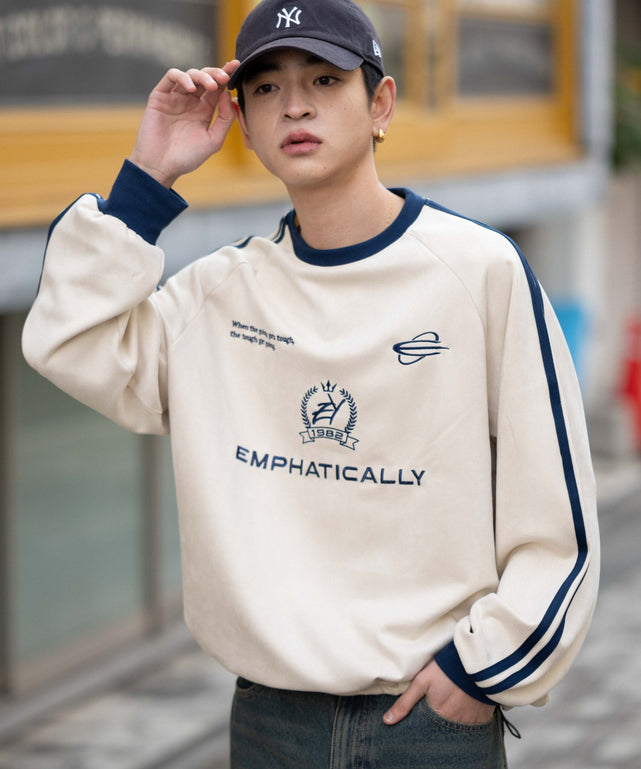 【ゲームシャツのようなデザインが目を惹くフェイクスウェードプルオーバー】