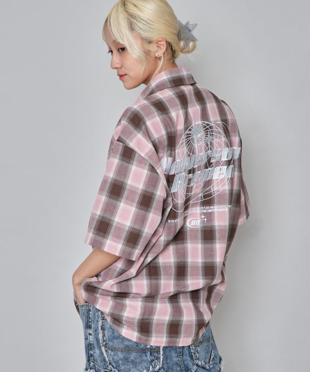 【刺繡デザインが目を惹くグラフィックオンブレチェックシャツ】
