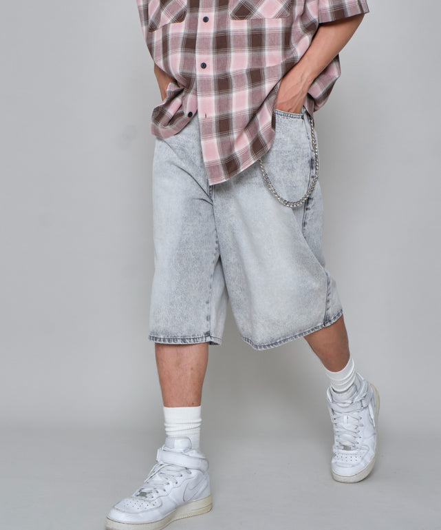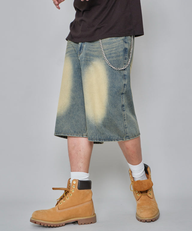 チェーン付きスーパーバギーデニムショーツ