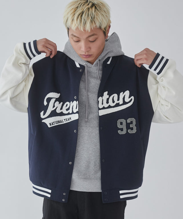 【サガラワッペンをあしらったスウェット素材のスタジャン】
