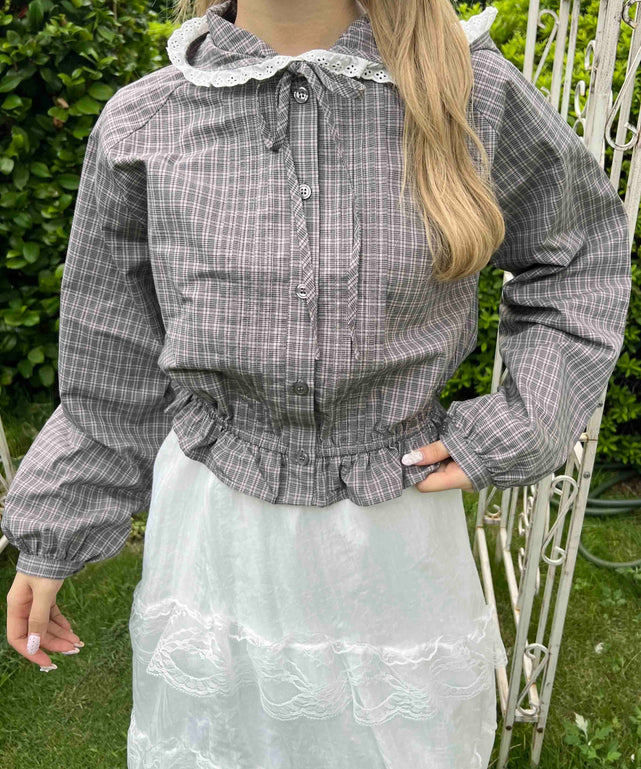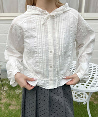 クリーンなシャツ生地にフリルと縫い方のデザインをプラスした主役級アイテム