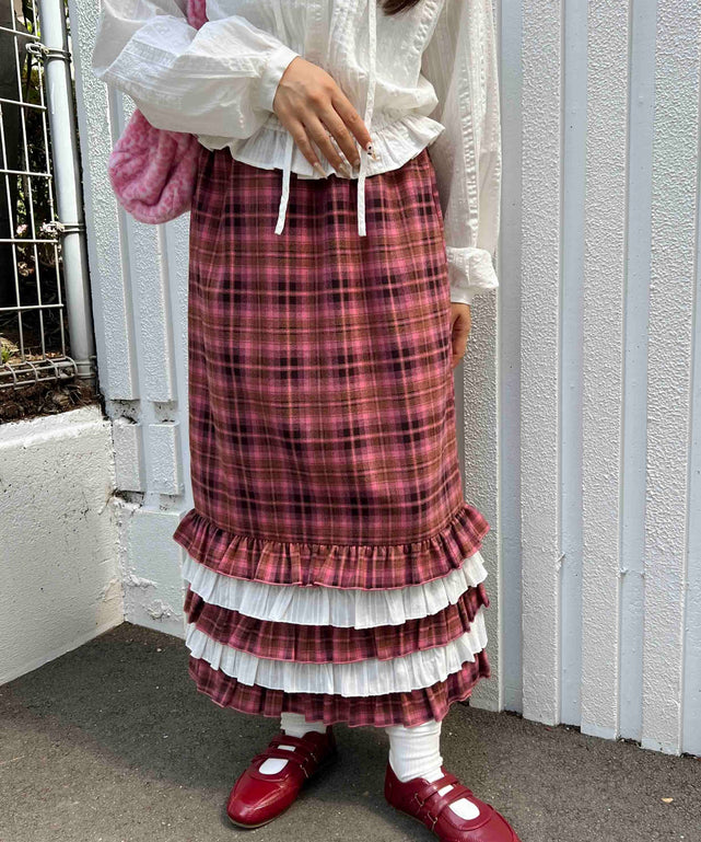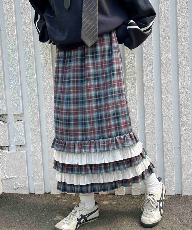 ヘムフリルチェックロングスカート