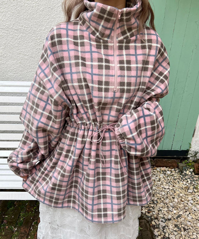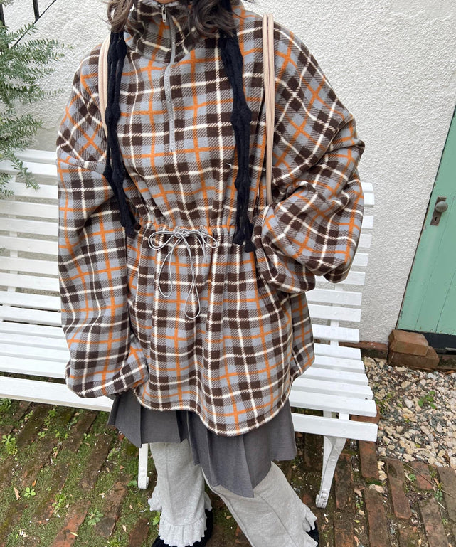 ハーフジップチェックフリースプルオーバー