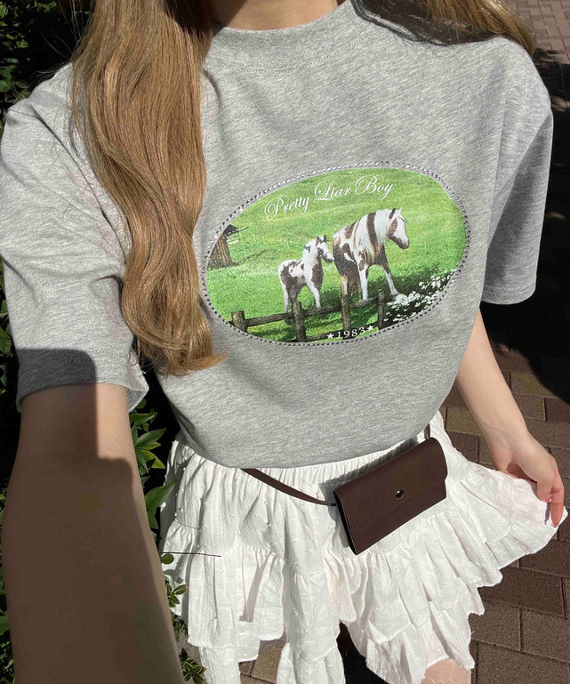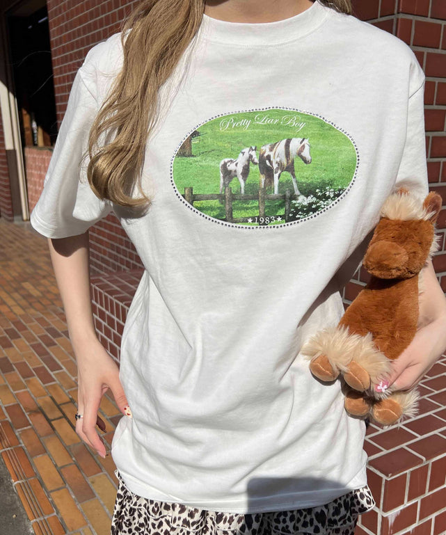 ラインストーンプリントTシャツ