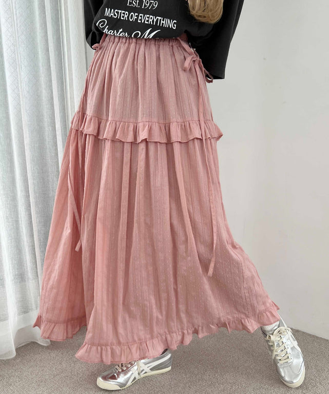 ショルダーリボンコットンレースロングスカート