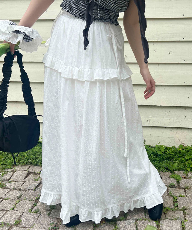 切替部と裾にはフリルをあしらい、ガーリーな雰囲気をプラス。