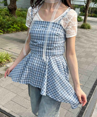 レースチョーカーセットチェックイレヘムキャミワンピース