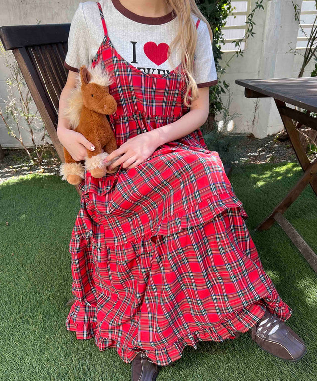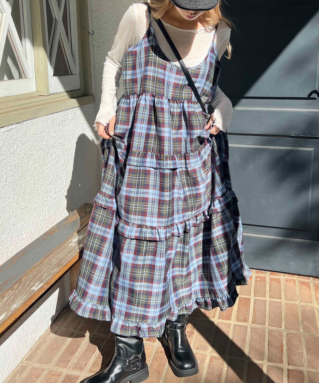 人気のチェック柄×ティアードで視線を集めるキャミワンピ