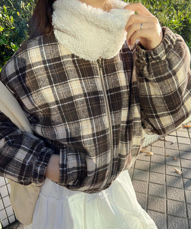 ボア襟チェック柄ブルゾン