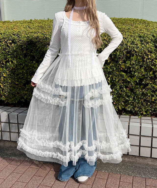 裾のフリルがさりげなく甘さを添えつつ、全体は縦ラインを意識したすっきりバランスに仕上げました!