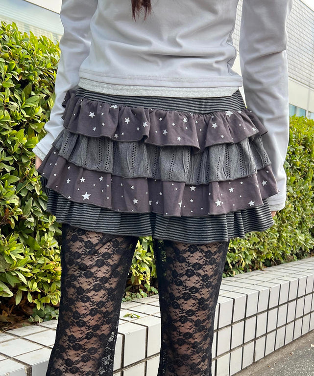 スターアソートティアードミニスカート/グレー モデル:160㎝ F着用