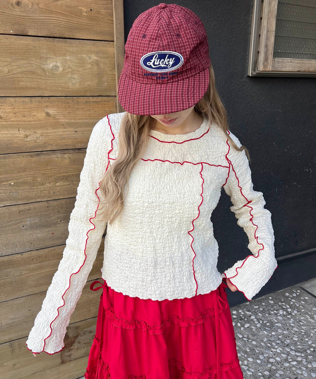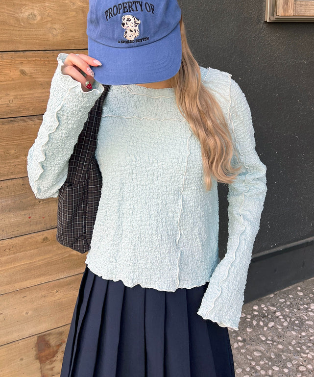 ぽこぽこっとした凹凸感が特徴の、表情豊かなデザインカットソー