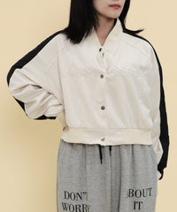 存在感のあるバイカラーデザインに、胸元のワンポイント刺繍が映えるスタジャン。
