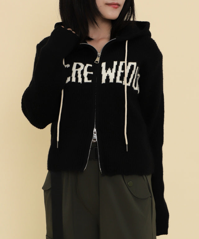 立体感のあるリブ編みニットに、大胆なロゴデザインを落とし込んだZIPパーカー。
