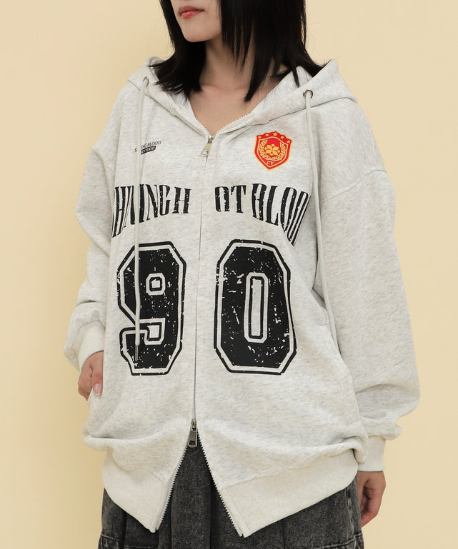 チームユニフォームを思わせる大胆な「90」ロゴが印象的なZIPパーカー。