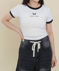 【この1枚で一気にY2K!バタフライが映えるリンガーT】