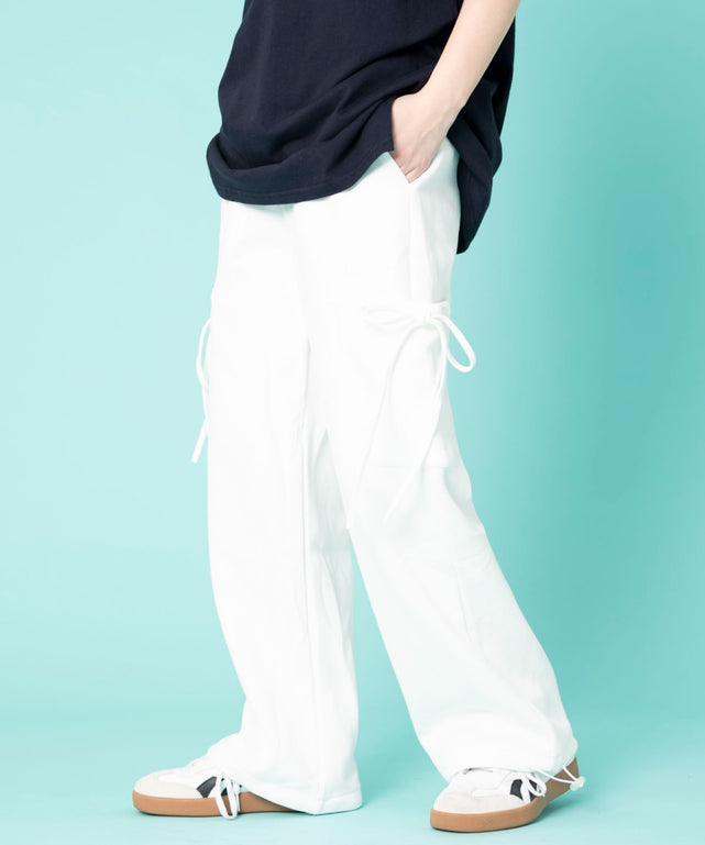 ウエストはゴムになっており、裾はドローコードつきなので絞りとそのままどちらも楽しめます!