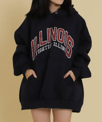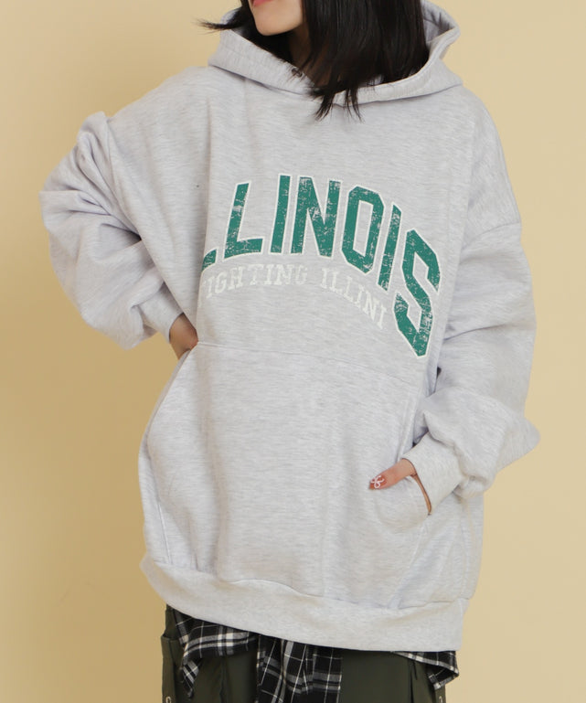 存在感のある「ILLINOIS」カレッジロゴがポイントのビッグシルエットパーカー。