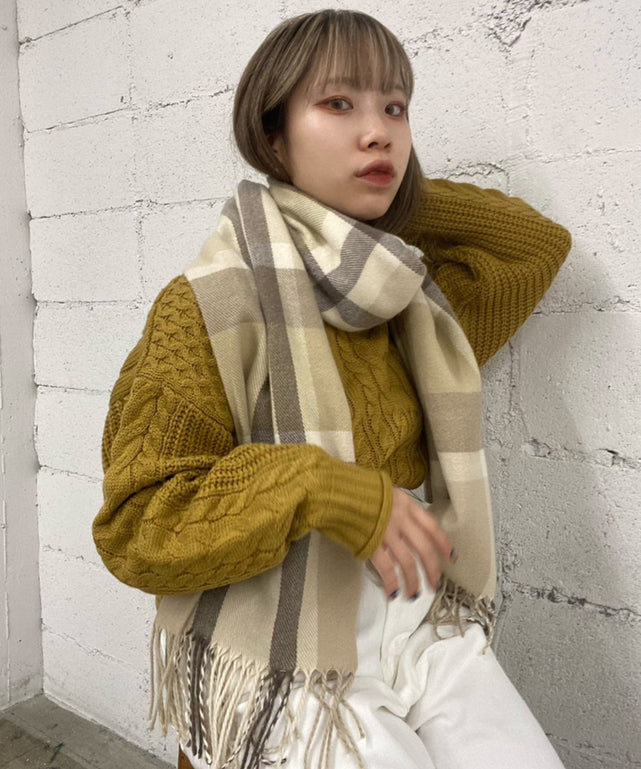 首に巻くだけでなく、ショールやひざ掛けとしても使用できるので、様々な場面で活躍すること間違いなしのアイテムです。
