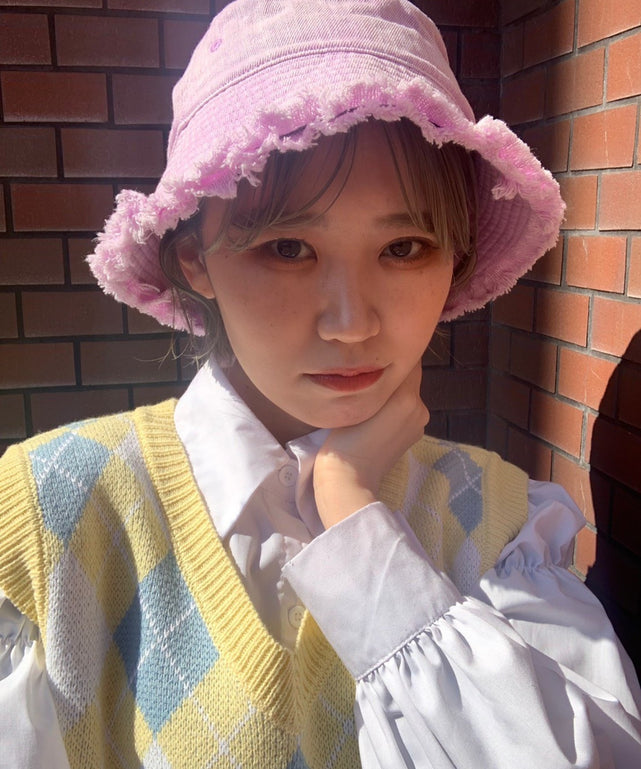 裾がフリンジ加工になったバケットハット。