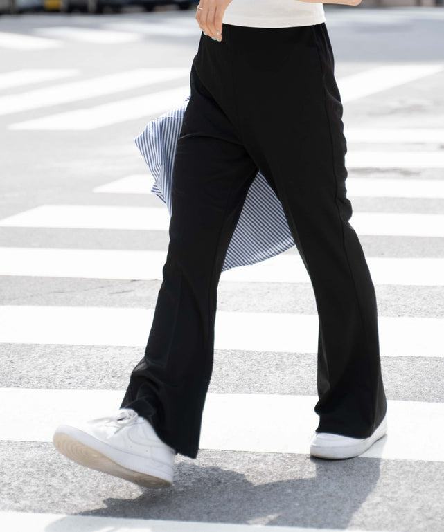 縦長のすっきりとしたシルエットに仕上げたフレアパンツ。
