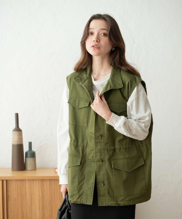スタンドネックミリタリーベスト