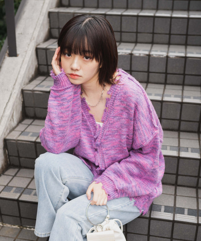 ダメージミックスカラービッグカーデ