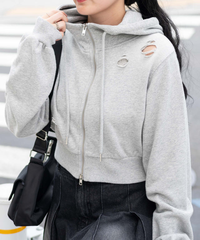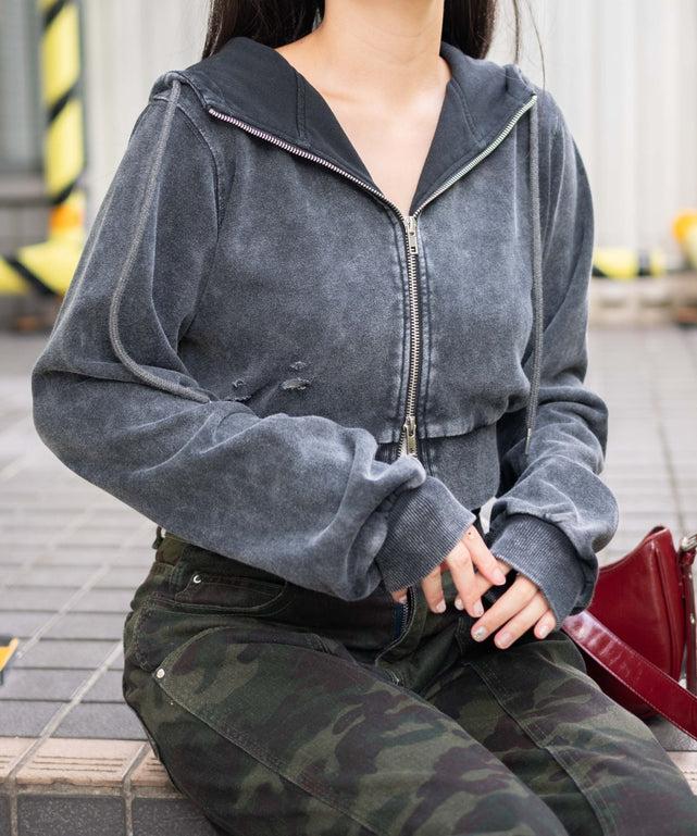 【サイジングがポイント!グランジ感たっぷりなジップパーカー】