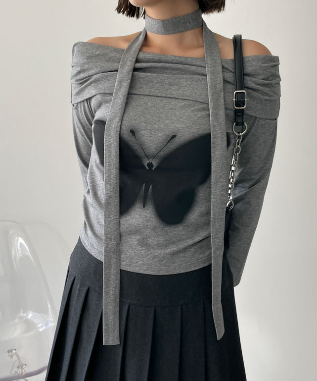 ストール付きバタフライオフショルトップス