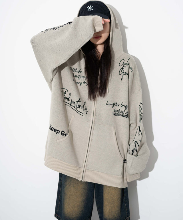 ジャガードロゴジップパーカー/ホワイト モデル:161cm L着用