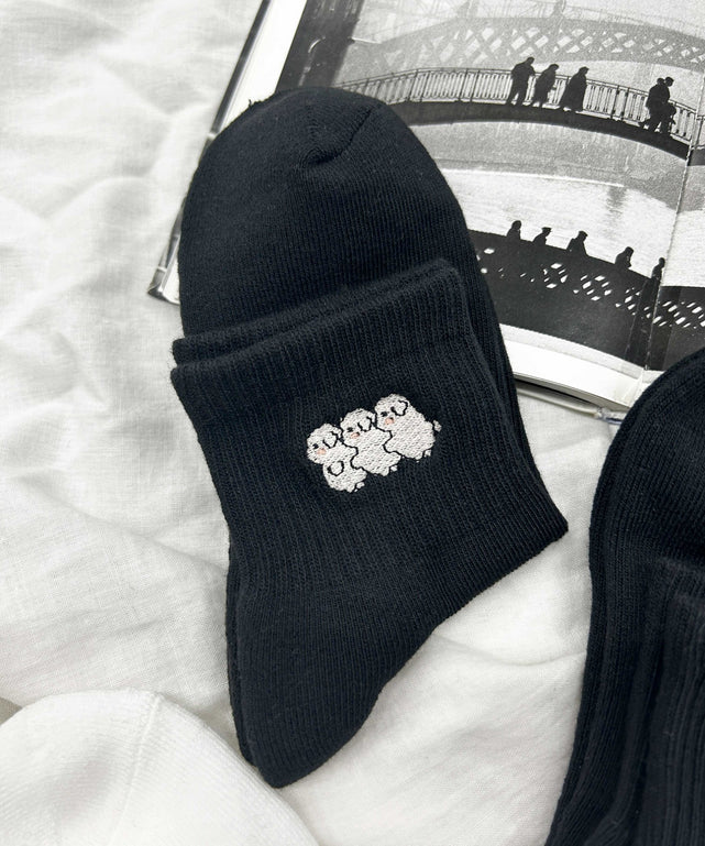 かっぱ等のかわいい刺繍が側面についたアンクルソックス。