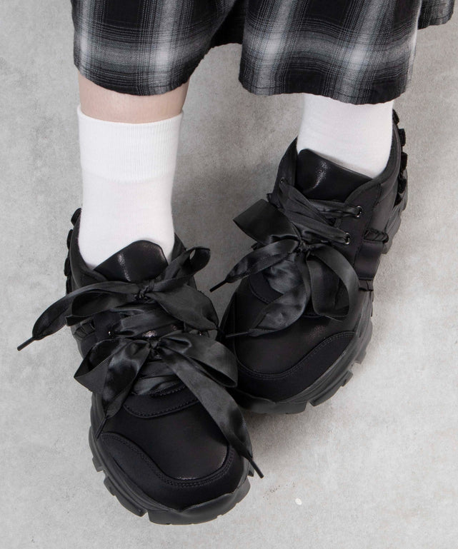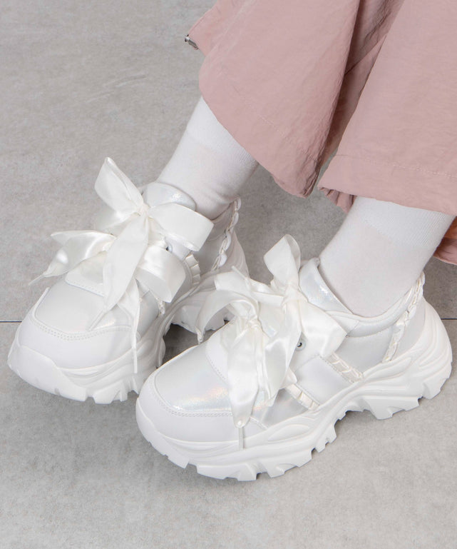 ダブルリボン厚底ダッドスニーカー