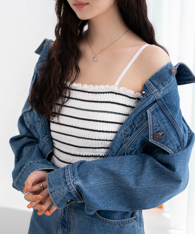 肌見せトップスのインナーとしてや、シアーシャツやカーディガンと