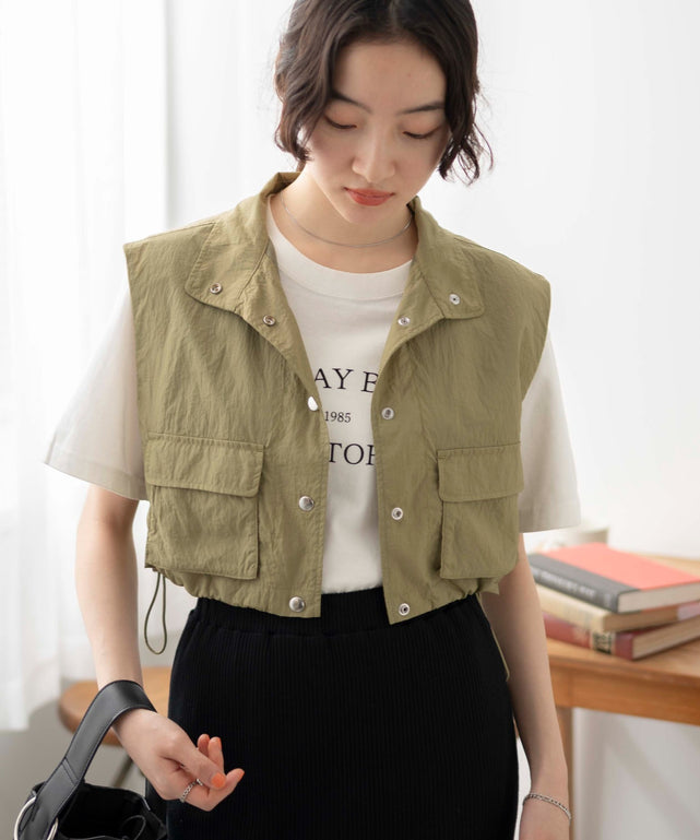 軽い着心地が嬉しいナイロン素材のショートベスト。