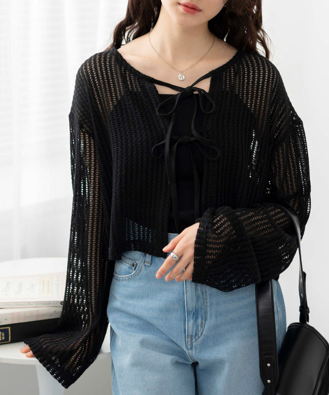 メッシュリボンカーディガン