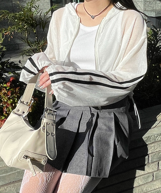 【ショート丈が可愛いメッシュパーカー】