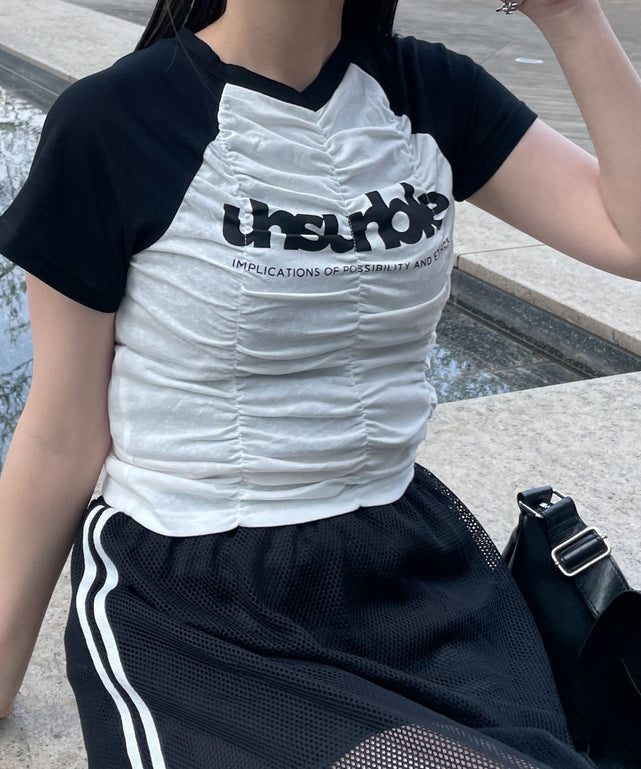 フロント部分にシャーリングデザインが施されたラグランです!