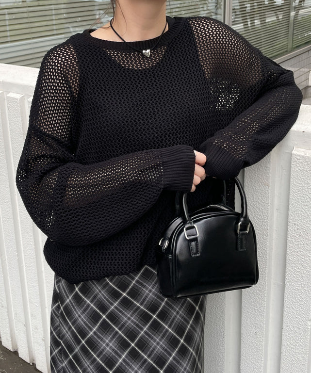 レイヤードを楽しめる透け感のあるメッシュニット素材◎