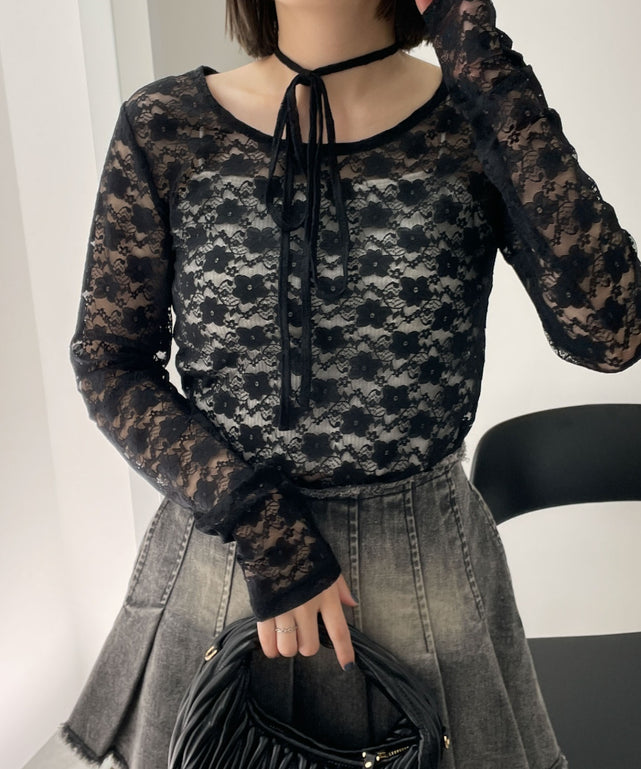 チョーカーは取り外しが可能なのでシンプルなレースT